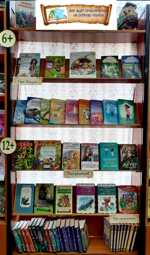 В библиотеке-филиале №4 для наших юных читателей продолжает действовать книжная выставка «Вас ждут приключения на острове чтения», которая состоит из трёх разделов: «Гора Сказок», «Поле рассказов» и «Река приключений и чудес». В первом разделе собраны книги со сказками русских и зарубежных авторов. Эти книги призывают детей быть смелыми, трудолюбивыми и учат видеть прекрасное в самых обыкновенных вещах.