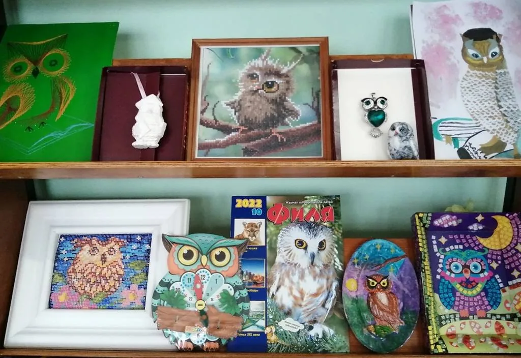 С давних времён сов считали символом мудрости. 1 декабря - День Совы - самопровозглашённый праздник. К этой дате в библиотеке - филиале №4 подготовлена выставка сов, так как она является её символом. На выставке представлены уникальные фигурки сов, выполненные в разных техниках из различных материалов. Наши читатели и гости дарят нам эту птицу в любом виде. Совы представлены в пазлах 3-D, в мягких игрушках, керамике, статуэтке, бижутерии, копилке, в работах, которые выполнялись в технике рисования, алмазной вышивки, картины из соломы, ниткографии, дерева, парафина и др. Наши внимательные читатели с удовольствием пополнили нашу выставку своими эксклюзивными, оригинальными совушками.