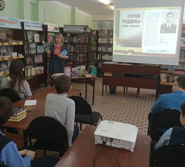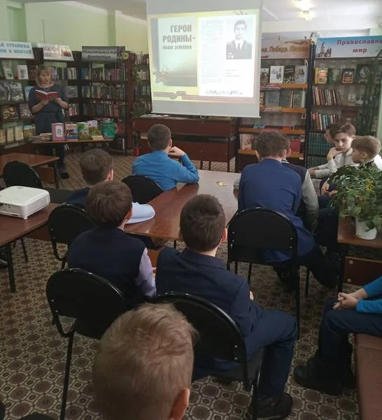 В рамках месячника военно-патриотического воспитания сотрудники библиотеки-филиала №12 подготовили выставку-стенд «Мужество сквозь юность» (в память о Марке Евтюхине) и провели урок мужества для учащихся СОШ №21 «Вызываю огонь на себя…».
