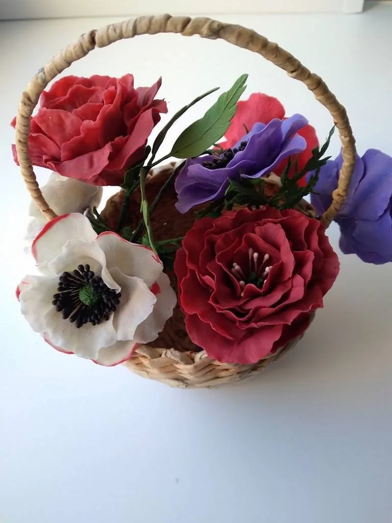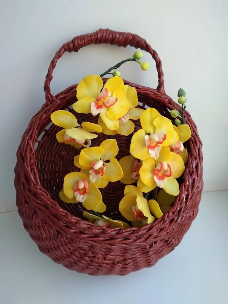 Чудесные корзинки, плетёные из бумажных трубочек, украшают орхидеи, гиацинты, маки, львиный зев, ирисы, фуксии и розы, удивительных окрасок, а также ягодки малины, которые трудно отличить от настоящих!