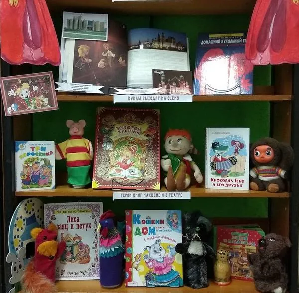 Ярко и красочно оформленная выставка с книгами и куклами несомненно привлечет внимание наших читателей и позволит ненадолго погрузиться в театральную среду.