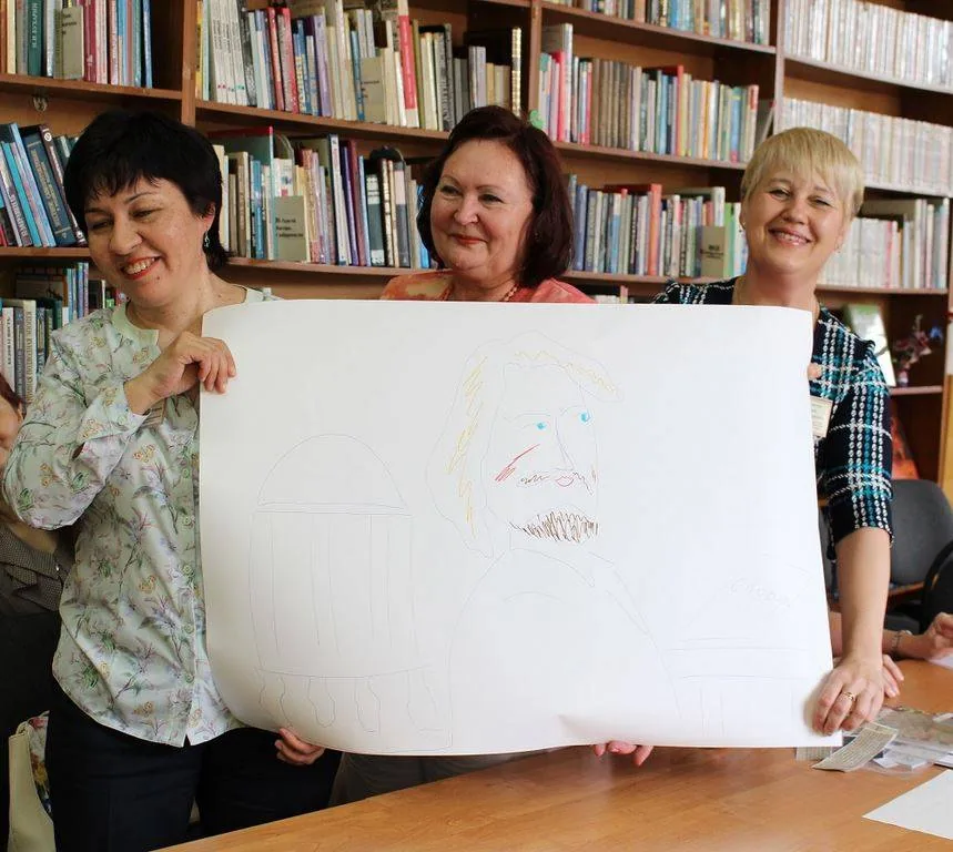 Интеллектуальная игра "в портреты" "В мире тургеневских героев" (это авторская разработка ведущего методиста орловской Пришвинки Ноготоковой А.Г.) снова вернула нас к тургеневским произведениям, заставила вспомнить описания образов и даже нарисовать на ватмане героев книг по отрывкам из текста. Этот материал «взят на вооружение» и обязательно эту игру мы проведем для наших читателей. Командное участие в этой игре ещё больше сплотило и сблизило коллег, сделало Творческую лабораторию запоминающейся и эмоциональной.