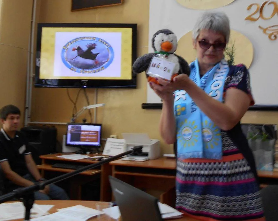 Точилкина Н.Н., библиотекарь из г. Солнечногорска, представила не только интересный и неизвестный широкому кругу краеведческий материал о страницах жизни и творчества цензора Владимира Львова, но и познакомила всех нас со своим спутником, талисманом библиотеки – птицей тУпиком!