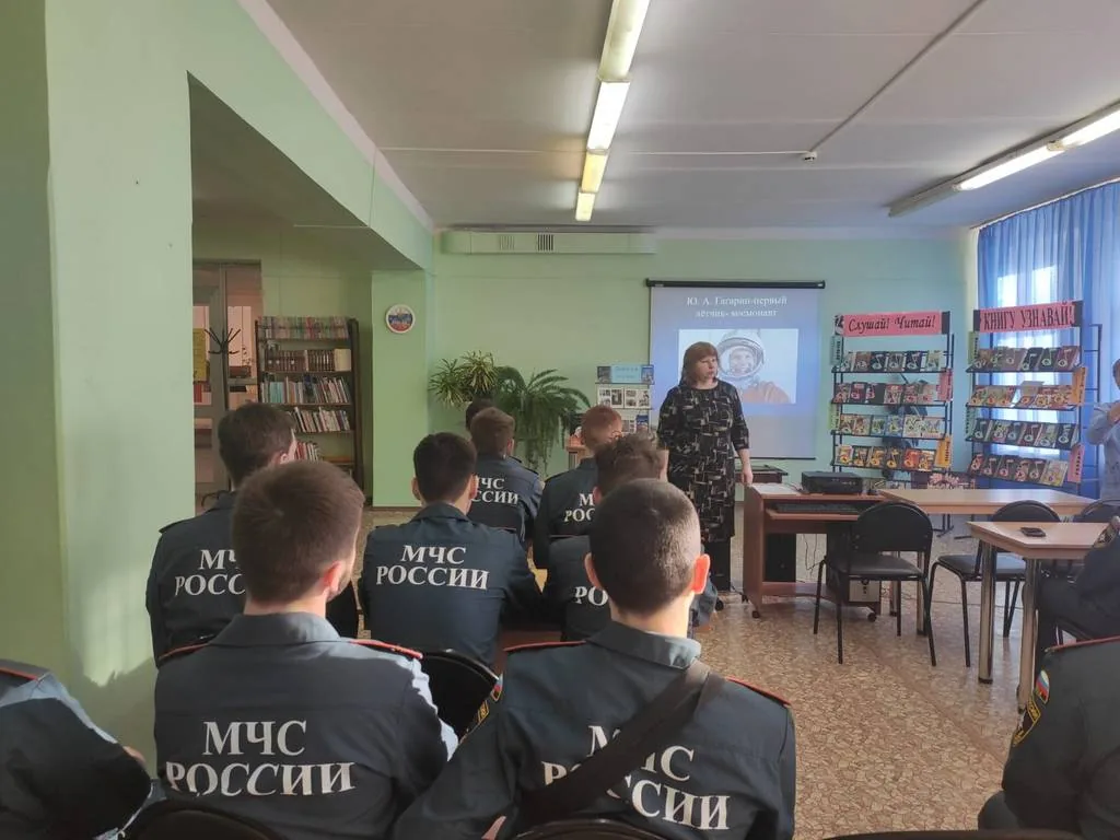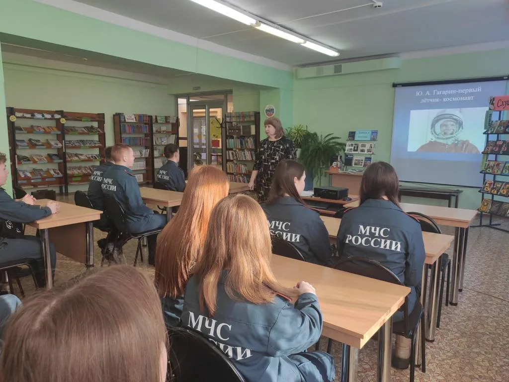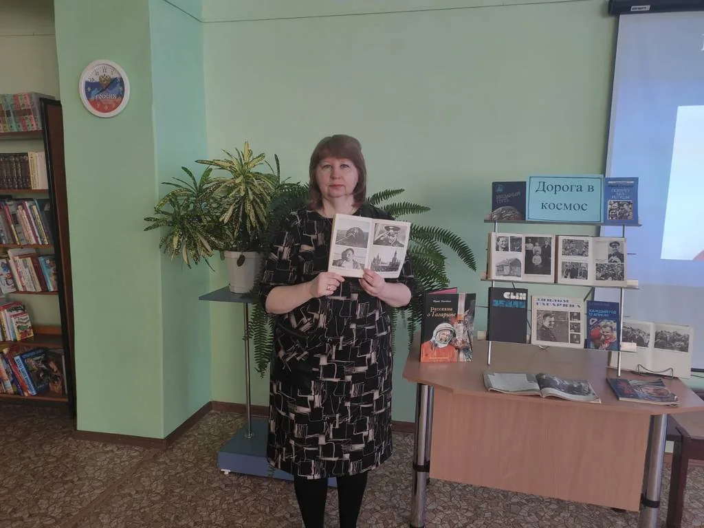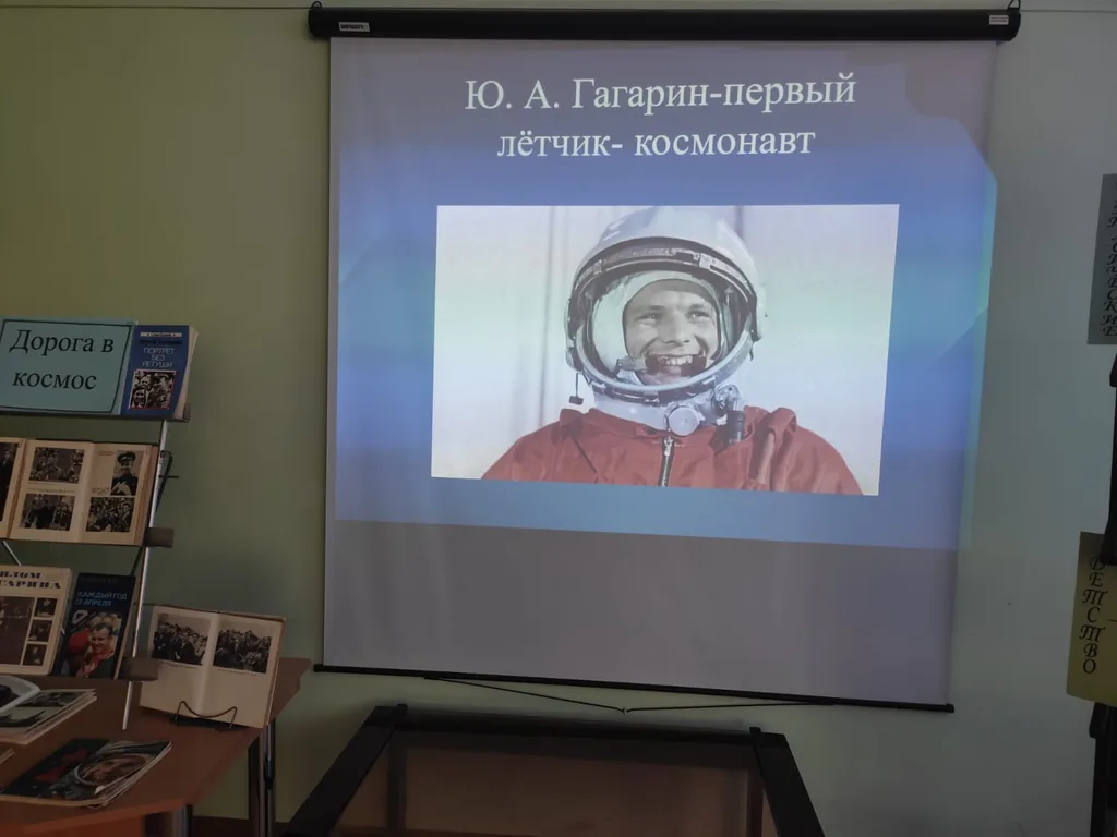 В ходе мероприятия, используя презентацию «Ю. Гагарин- первый лётчик- космонавт», библиотекарь познакомила молодёжь с основными этапами жизненного пути Ю. А. Гагарина. Юноши и девушки узнали о наиболее интересных эпизодах биографии первого космонавта: родился 9 марта 1934 года, в деревне Клушино Гжатского района Западной области РСФСР, был третьим ребёнком в семье.