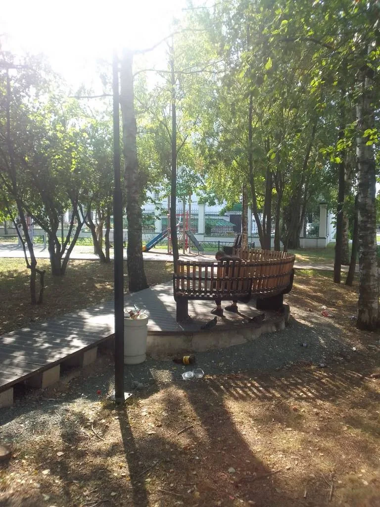 Решили с подругой посмотреть новый сквер. Встретились. Прошли к самой интересной скамейке в укромном месте в тени под деревьями. Но на ней уже жил человек. Спал. Почему - то в обуви и без пижамы. Мы нашли другое место уже на солнечной стороне.
