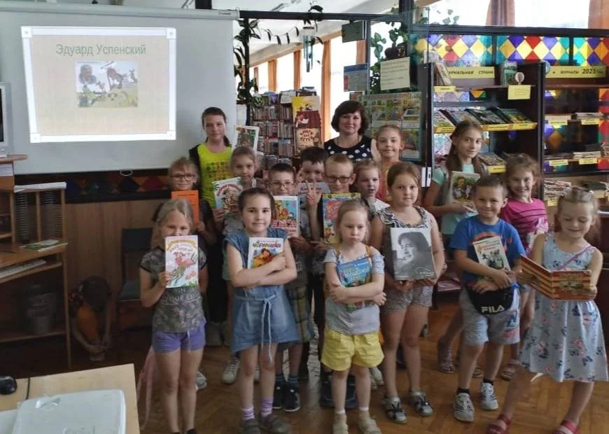 В ходе беседы и красочной презентации «Весёлый сказочник Эдуард Успенский» школьники узнали о детстве писателя и его творчестве. С удовольствием отвечали на вопросы викторины «Крокодил Гена и его друзья»», ребята порадовали своими знаниями, а также все вместе разгадали кроссворд «Дядя Фёдор, пёс и кот». Подготовленная книжная выставка заинтересовала юных читателей.